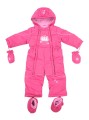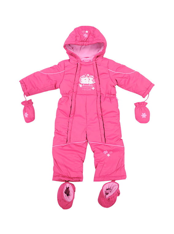 Kombinezon dziewczęcy z kolekcji "Śnieżynka" marki Tup-Tup. Jednoczęściowy, w kolorze amarantowym. Rozpinany symetrycznie z przodu na dwa zamki. Posiada ocieplane buciki i rękawiczki. Plecy i przód ocieplane polarową podszewką, w rękawach i nogawkach podszewka poliestrowa. Kaptur ocieplany miękkim polarem, doszyty na stałe. W rękawach mankiety z dzianiny, a dodatkowo w nogawkach mankiet antyśniegowy.